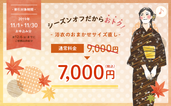 ▽ 浴衣のお直しオフシーズン割引概要