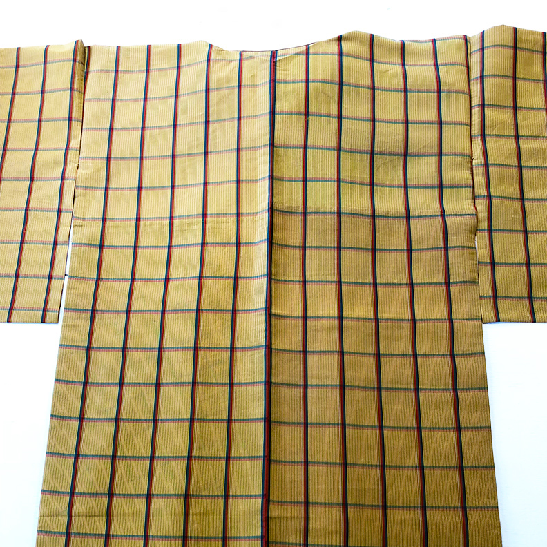 古い着物のため、身丈が短い、縫込みがない、袖が長い、難ありです。