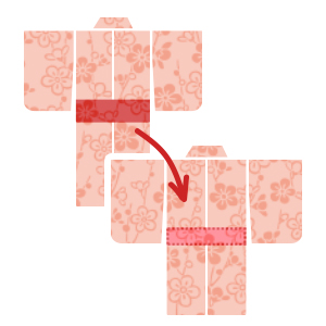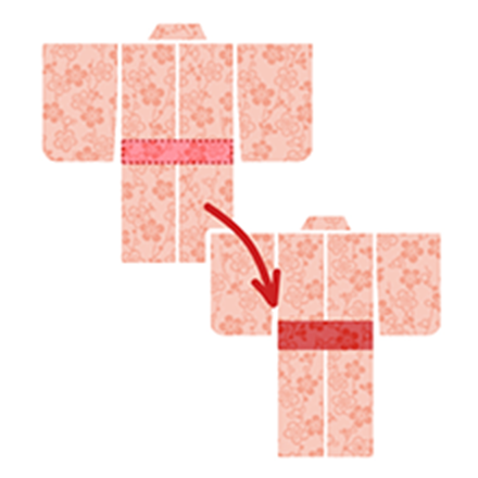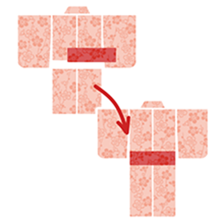 裾に柄がある場合や浴衣を切ってしまいたくない場合は、腰のあたりに縫い込みを施す「中揚げ」の方法でお直しをいたします。
